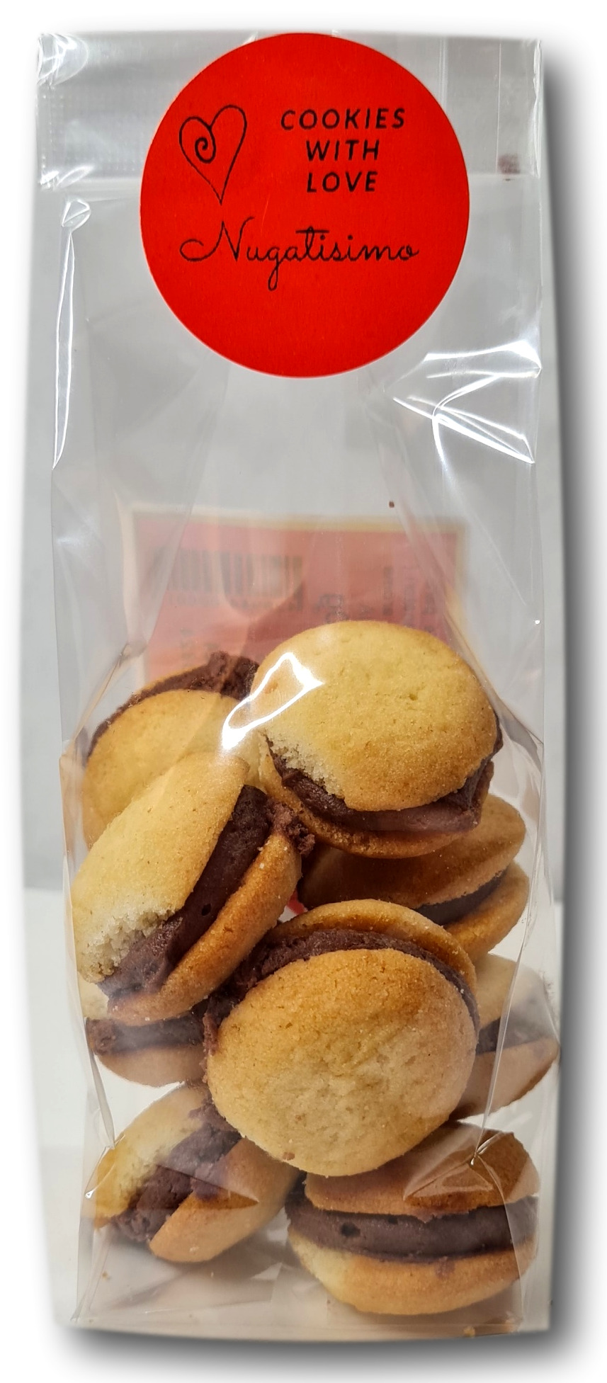 2 coji de paleuri crocante si pufoase in acelasi timp unite cu o bogatie de crema de cacao si invaluita intr-o aroma delicata de esenta de rom .