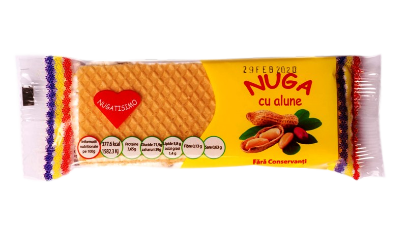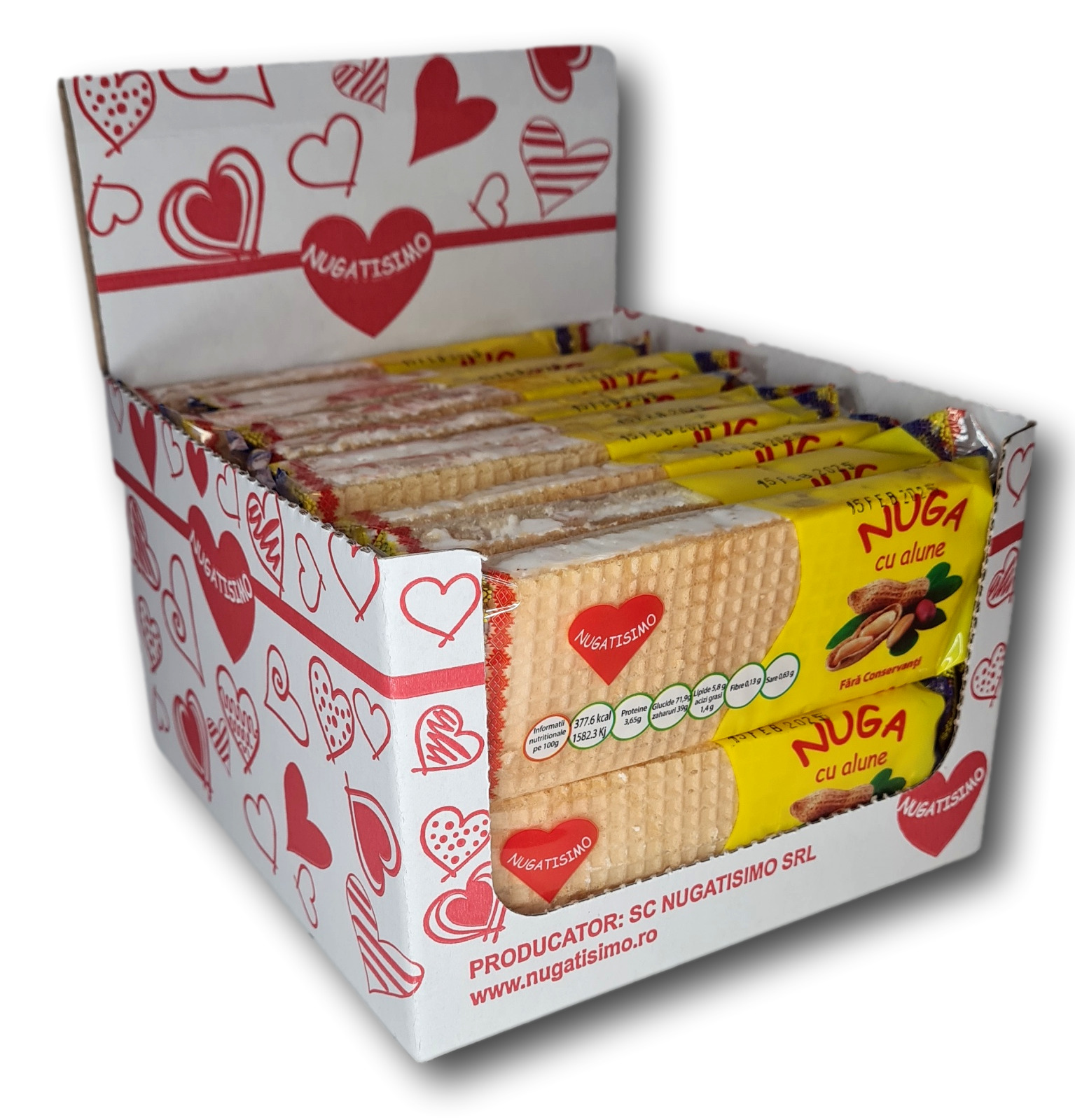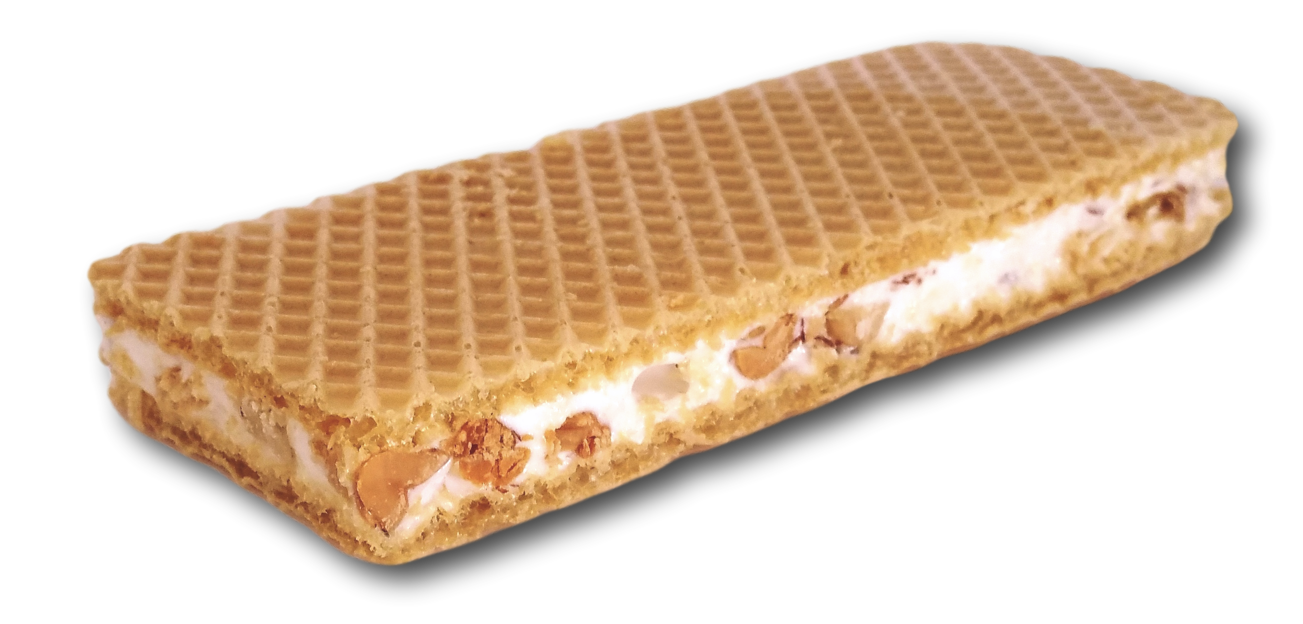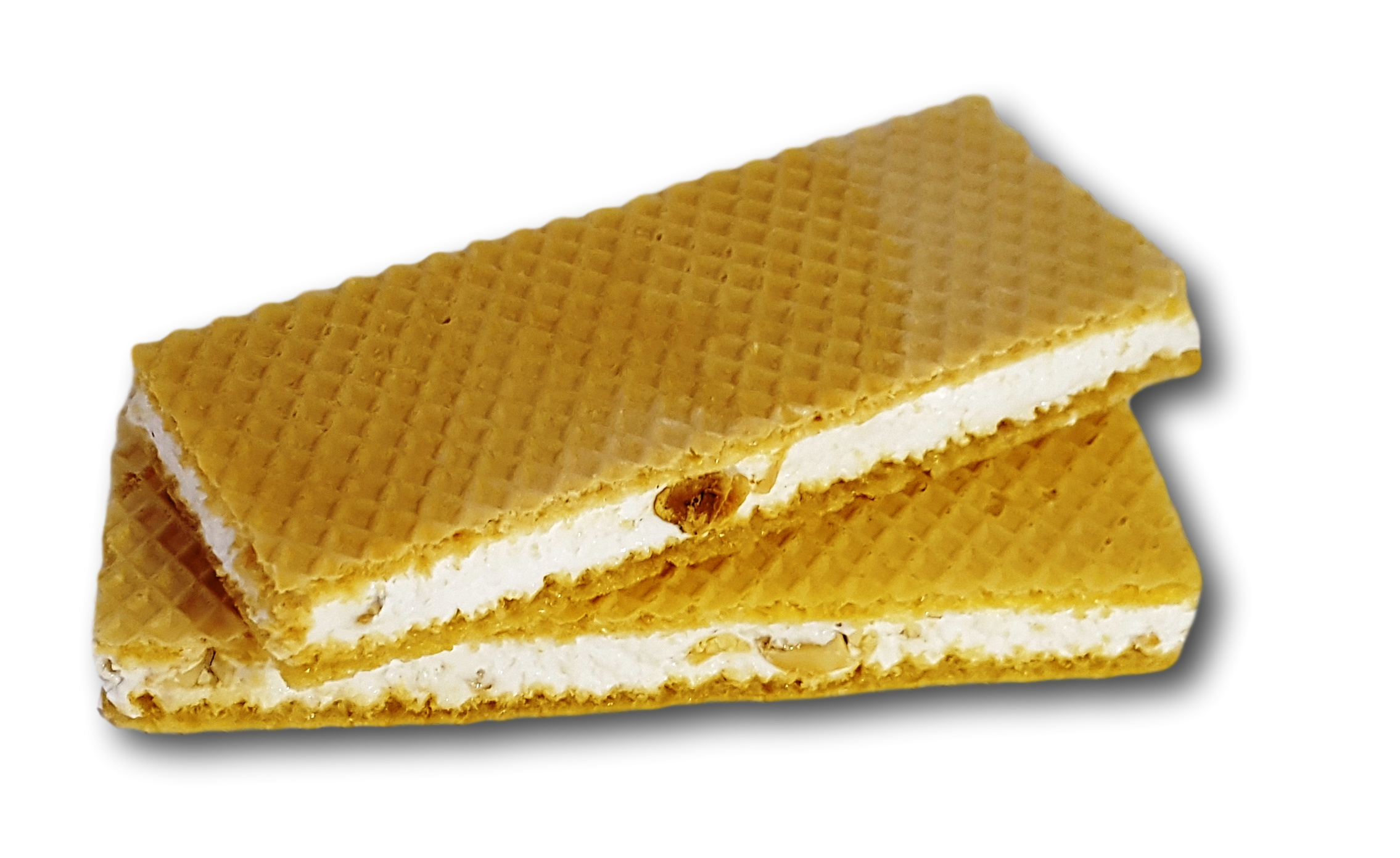 Descopera gustul artizanal al napolitanei cu crema de nuga bogata in arahide.